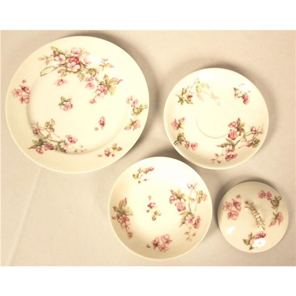 Vintage Havilland and Co Schleiger 241C Limoges 10pc ED1252. Good Condition! EX701LD. This is a vintage lot of 10 pieces of Limoges by Havilland & Co. It is white with pink flowers. Pattern is Schleiger 241C. This lot consists of 3 lunch plates (7.5"), 5 saucers (5.5"), 1 fruit/berry bowl (5"), 1 sugar lid (3.5"). No chips, cracks or repairs. Valued between $200-$250.00.